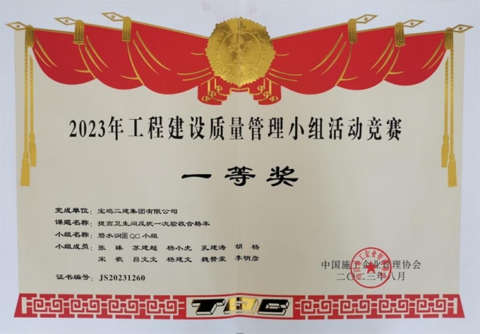 最終,碧水潤園QC小組“提高衛(wèi)生間反坎一次驗(yàn)收合格率”榮獲2023年工程建設(shè)質(zhì)量管理小組活動(dòng)競賽一等獎(jiǎng),技術(shù)質(zhì)量部QC小組“提高屋面廣場磚施工驗(yàn)收合格率”榮獲2023年工程建設(shè)質(zhì)量管理小組活動(dòng)競賽三等獎(jiǎng),明星QC小組“高層泵管清洗水處理技術(shù)創(chuàng)新”榮獲2023年工程建設(shè)質(zhì)量管理小組活動(dòng)競賽三等獎(jiǎng)。