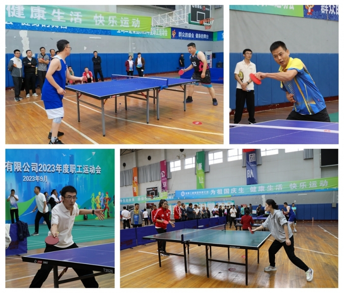 本次運動會以競技、趣味比賽兩部分組成。設(shè)有乒乓球、羽毛球個人賽,羽毛球男女混雙賽,拔河、籃球團體賽及三項趣味項目比賽。