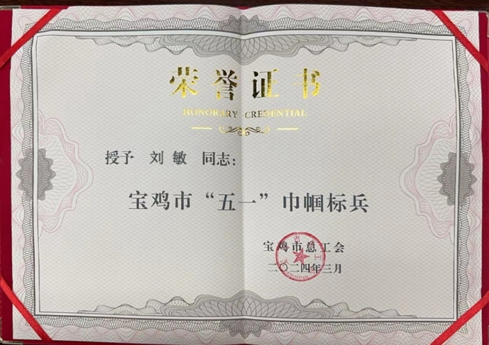 3月8日,在寶雞市總工會召開的第七屆二次女職委全委會上,第十七項目部女職工劉敏被授予“五一巾幗標兵”稱號。集團公司始終為女職工提供干事創(chuàng)業(yè)的廣闊舞臺,多年來,先后有14名女職工獲得各級各類巾幗標兵稱號,2個集體被授予“五一巾幗標兵崗”。